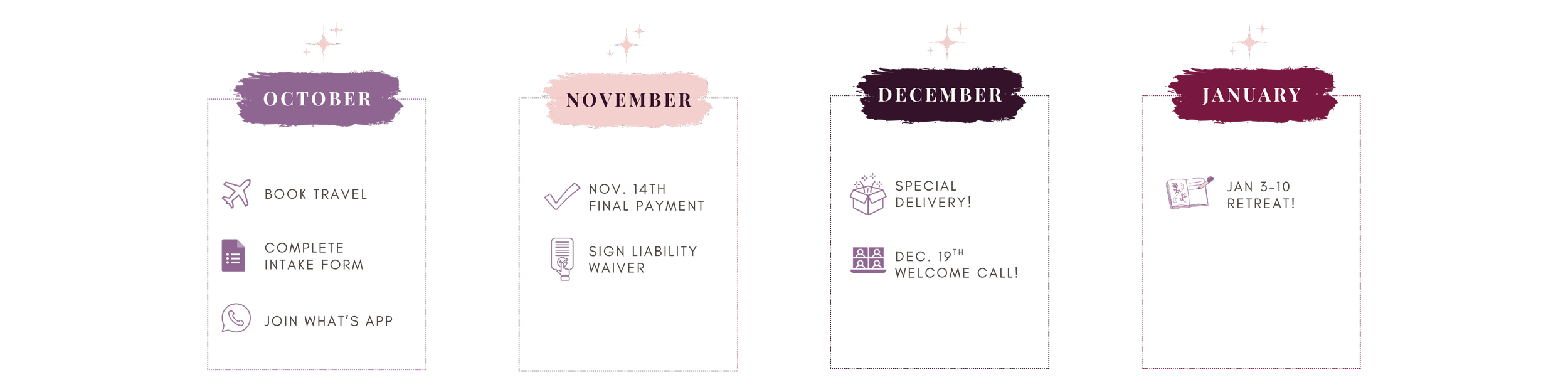 This resource page is designed to support you in preparing for every aspect of your experience, from practical logistics to setting intentions for the transformation that lies ahead. We've gathered everything you need to feel confident, prepared, and deeply excited about the week that will mark the beginning of your next chapter.